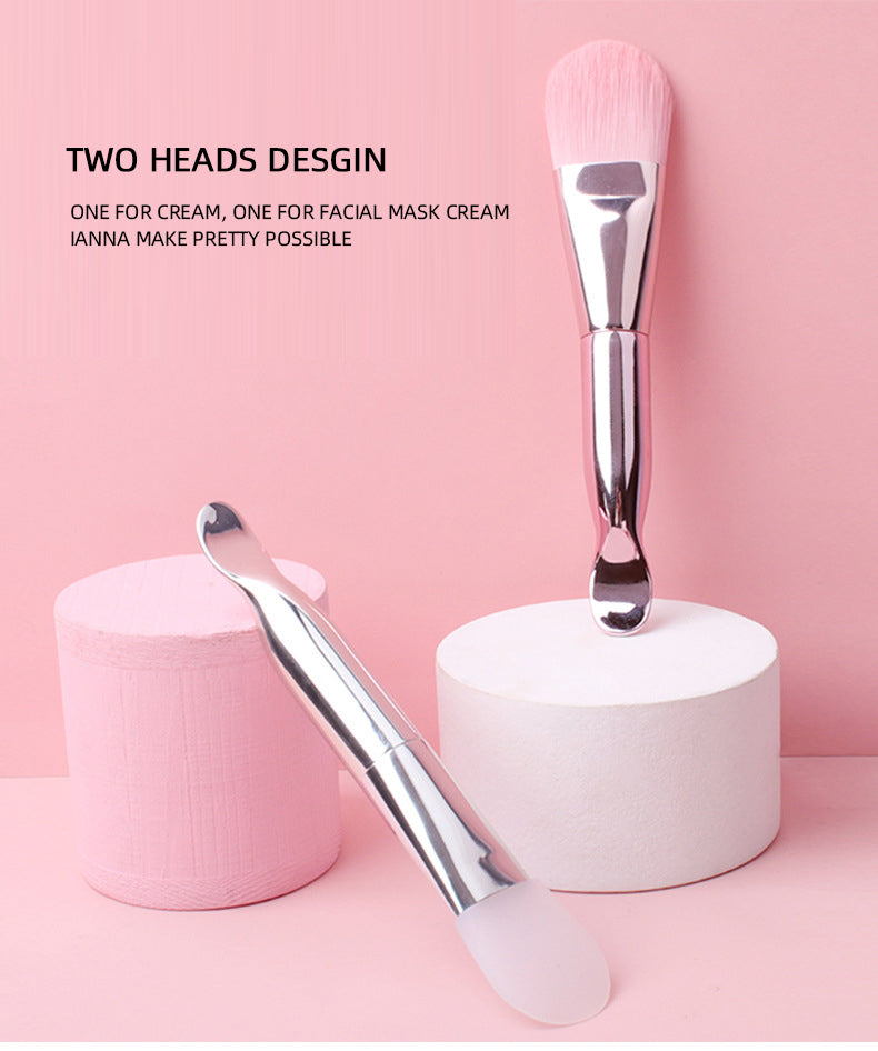 This dual heads DIY face mask brush is one fibre hair brush(or silicome brush) , the other is scoop for mud mask or cream. This brush is 14cm/5.51inch length with rose gold and silver color. Logo can be engraved on the barrel.